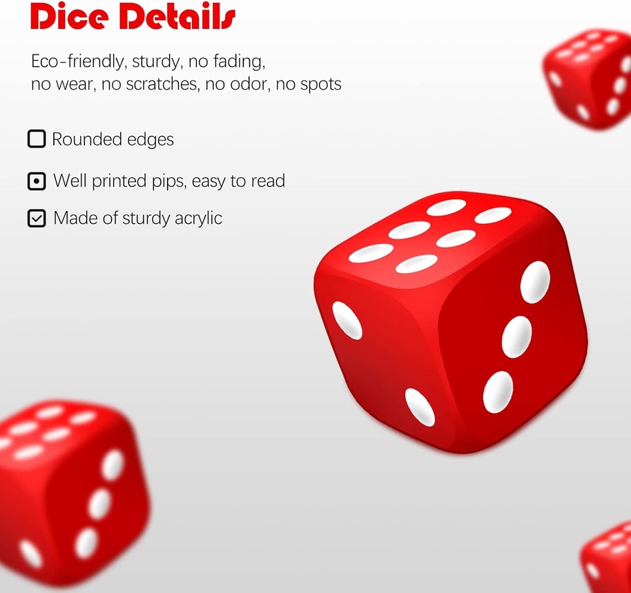 The 16mm Red Acrylic Rounded Dice Set adds a great visual element to your game table. The dice set is made of acrylic resin, boasting squared edges and a clean finish. Each die is accurately balanced, giving fair results with every toss. Designed to work in all your favorite dice games, they bring in an element of fun and style.