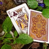 Bicycle Verbena Deck were inspired by the wildflower, featuring a design with intricate lines of the stems and blossoms, often seen in shades of deep purple. The golden foil on the tuck represents the warmth of the sun. The tuck design is reminiscent of the divine and supernatural forces often associated with its namesake.