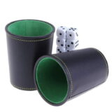 The Dice Shaker has a quality PU leather exterior built to last and the vibrant pop of color will look classy on any game table. It has cylindrical walls rather than a tapered out style.The felt lining greatly muffles the noise of shaking, keeping a game easy on the ears. A perfect accessory for dice games like Farkle, Yahtzee, and Liar’s Dice.