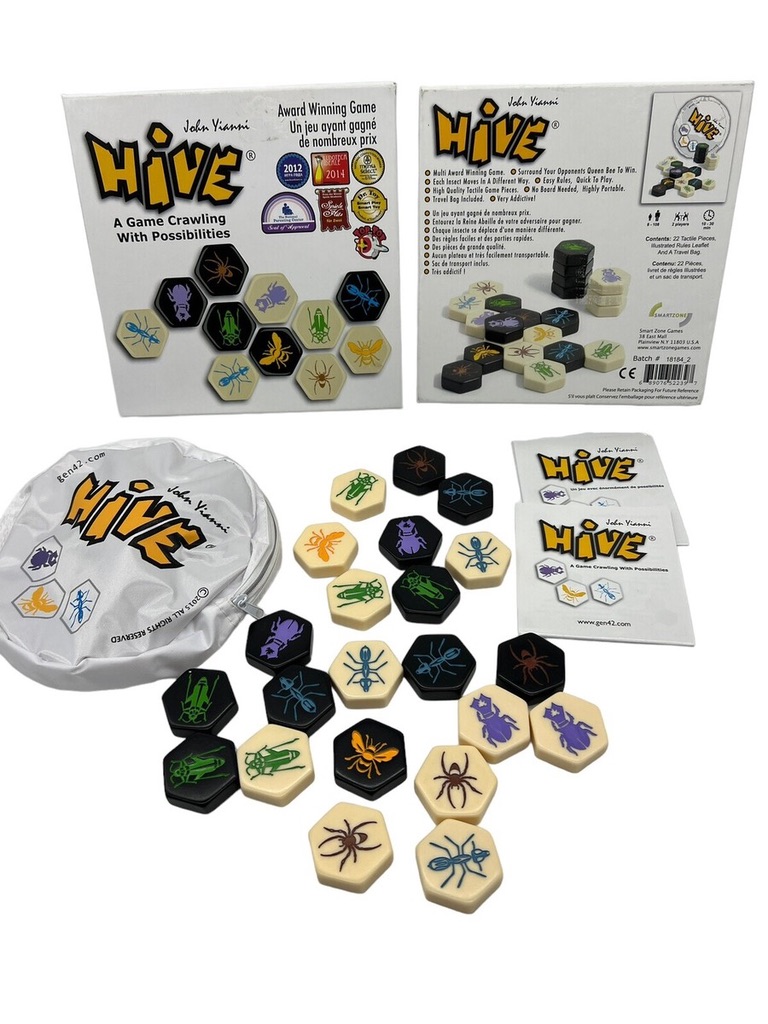 Hive is a board game with a difference. There is no board. The pieces are added to the playing area thus creating the board. As more and more pieces are added the game becomes a fight to see who can be the first to capture the opposing Queen Bee. Make sure to keep one eye on the Hive and the other on your opponent’s reserve pieces. Hive is a 2 player game that builds strategy skills. Hive is a game with simple rules yet challenging in depth.