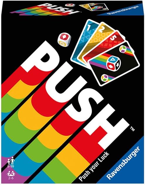 Push your luck… but not too far! Push is a thrilling card game, offering a quick and exciting playtime of approximately 20 minutes. With simple guidelines, this game is a game of calculated risk and reward, providing endless entertainment. This push your luck game is packaged up in a durable plastic case that can fit in your purse, bag, or backpack!