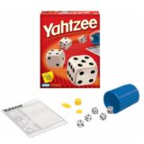 Box set includes: 1 Yahtzee shaker, 5 dice, 1 score pad and game guide.